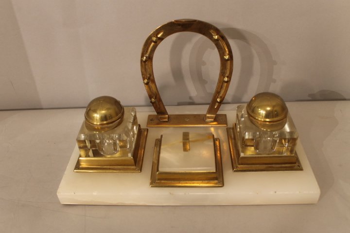Indian Brass Elephant Bell, Cast S.B. Paper Weight and Good Luck Horse Shoe Coin BankMar 16, 2026Italian Modern, Hand Carved Alabaster, Horse Motif, Table Lamps, Italy, 1950sORMOLU & BRASS: CANDLESTICKS, INKWELL, ORMOLU BUSTMar 07, 2026Early 20th Century Double Inkwell on Wooden StandBrass Pen Holder Inkwell Desk Stand3 days LeftAntique Brass Standish Inkwell With Candleholders6 days LeftPair of Brass Trotting Horse BookendsMar 02, 2026An Exquisite White Jade Cover with Gold Horse Pattern Horse-head PotMar 07, 2026Antique Brass Neoclassical Style Double Inkwell3 days LeftSmall Brass Pair of Designer Horse Candle Holders – 5"Mar 11, 2026A Exquisite Agate Cover with Gold Horse4 days LeftVintage Solid Brass Ornate Triple Inkwell6 days LeftVintage Brass Feng Shui Horse FigurinesMar 06, 2026Vintage Brass Galloping Horses Wall PlaqueMar 18, 2026Baroque-style Brass and Agate Desk Set5 days LeftVintage Decorative Antique Art Nouveau Brass Ink Well5 days Left