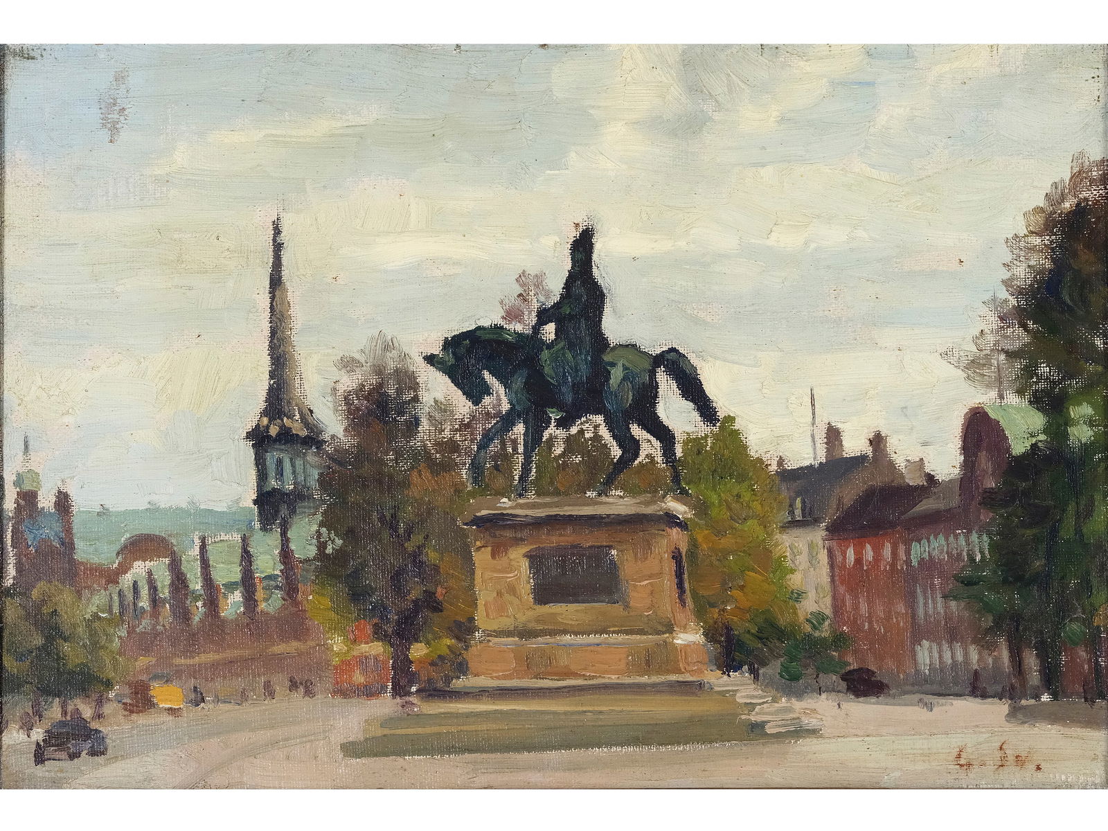 Equestrian statue, Oil on canvas
