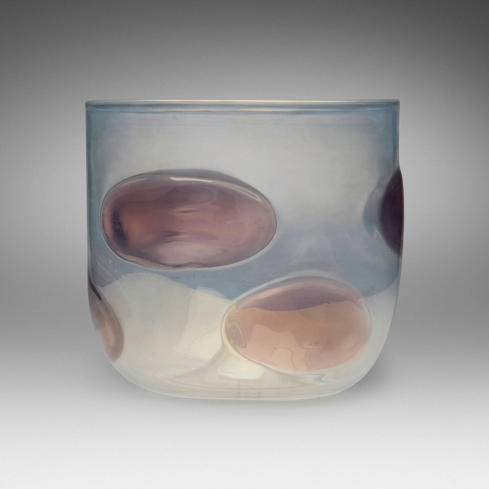 SoldErcole Barovier Crepuscolo vaseErcole Barovier Crepuscolo vase Ferro Toso Barovier Italy, 1935-36 internally decorated glass with applied prunts 9.5 w x 5.25 d x 10.5 h inches Literature: Venetian Art Glass: An American CollectionSee Sold Price
