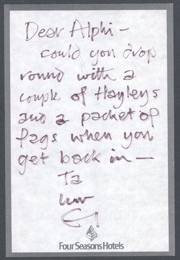 SoldElvis Presley Handwritten Note to PriscillaElvis Presley Handwritten Note to Priscilla Presley on International Hotel Stationery (Museum Exhibited) W/Letter From Priscilla - This handwritten note on International Hotel stationery was written bSee Sold Price