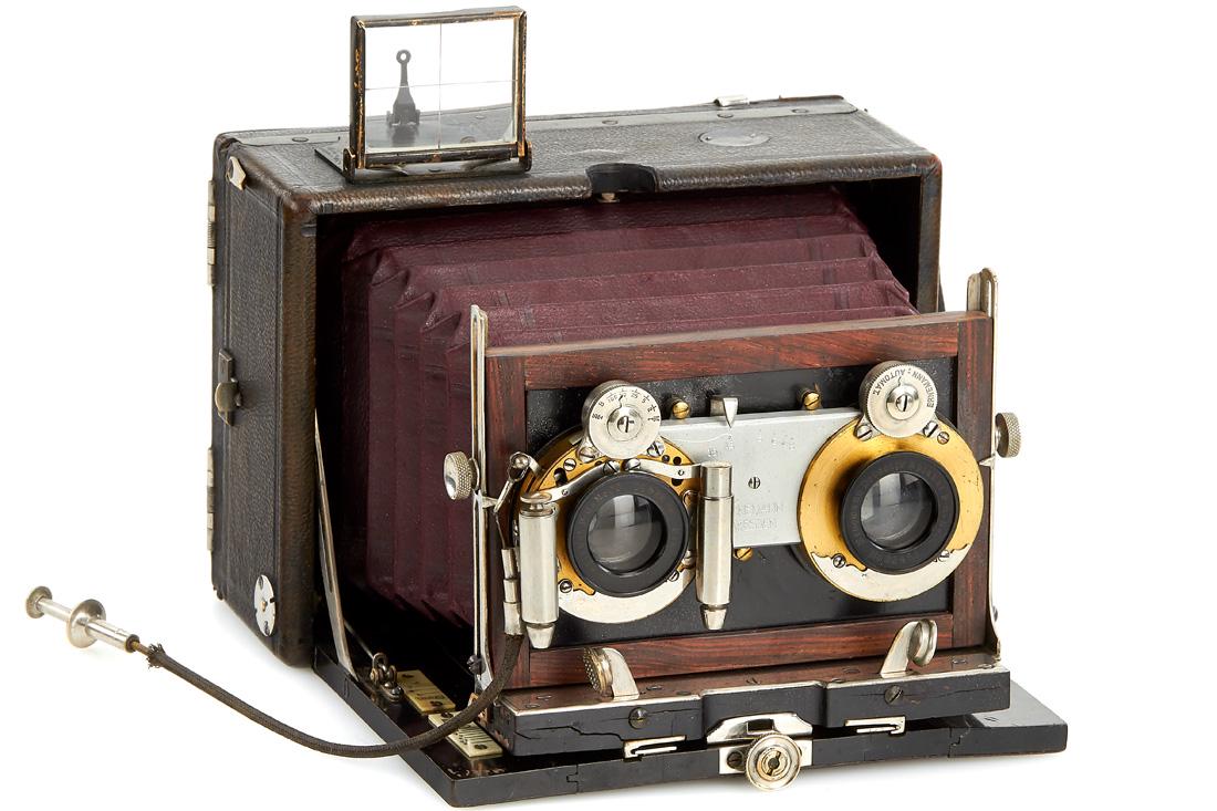 A lot of one antique stereo model and one wooden camera.205 Lots AwayVintage Polaroid Land Camera Model 806 days LeftVintage SIX--20 Brownie Camera6 days LeftStereo Camera and 2 LensesMar 14, 2026360-Degree Panoramic Camera, c. 1900Mar 14, 2026Stereo-Panorama Rekord Model I in 9 x 18 cm, 1910Mar 14, 2026Butcher Carbine Stereo Panorama, c. 1910Mar 14, 2026Ernemann Aufnahme Kino Model C Film Camera, c. 1912Mar 14, 2026Stereo Magazine Camera, c. 1885Mar 14, 2026Tropical Luxury Camera "Phönix", c. 1924Mar 14, 2026Mentor Stereo Reflex, c. 1914Mar 14, 2026Vintage Kodak No. 3A Autographic folding pocket cameraMar 08, 2026Rochester Optical Camera The IdealMar 08, 2026Universal Studio Camera, c. 1880Mar 14, 2026Ives Kromskop Three-Color Stereo Viewer, 1894Mar 14, 2026Gaumont Viewer and StereospidoMar 14, 2026