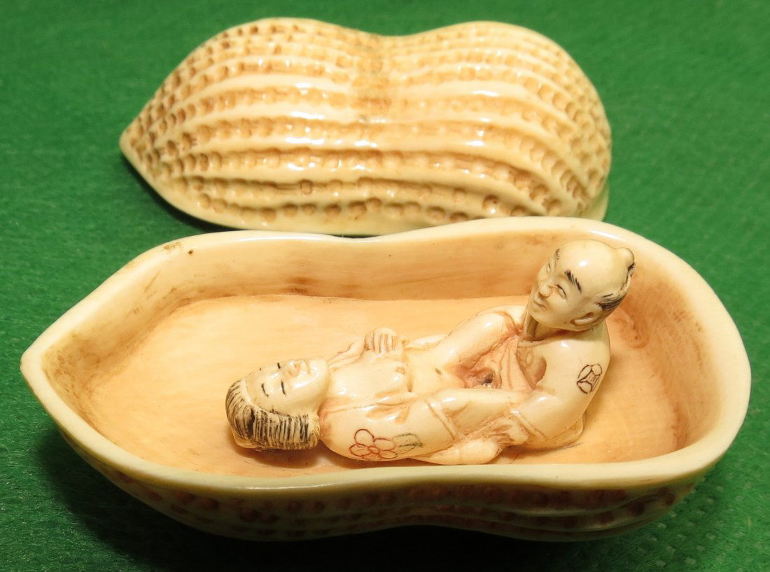 Erotic Ivory Netsuke, Peanut W/inside Scene.