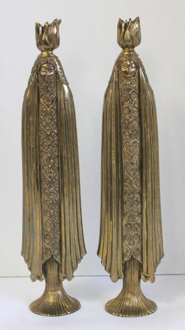 Erté, 2 "Vestal" Gilt Bronze Candlesticks