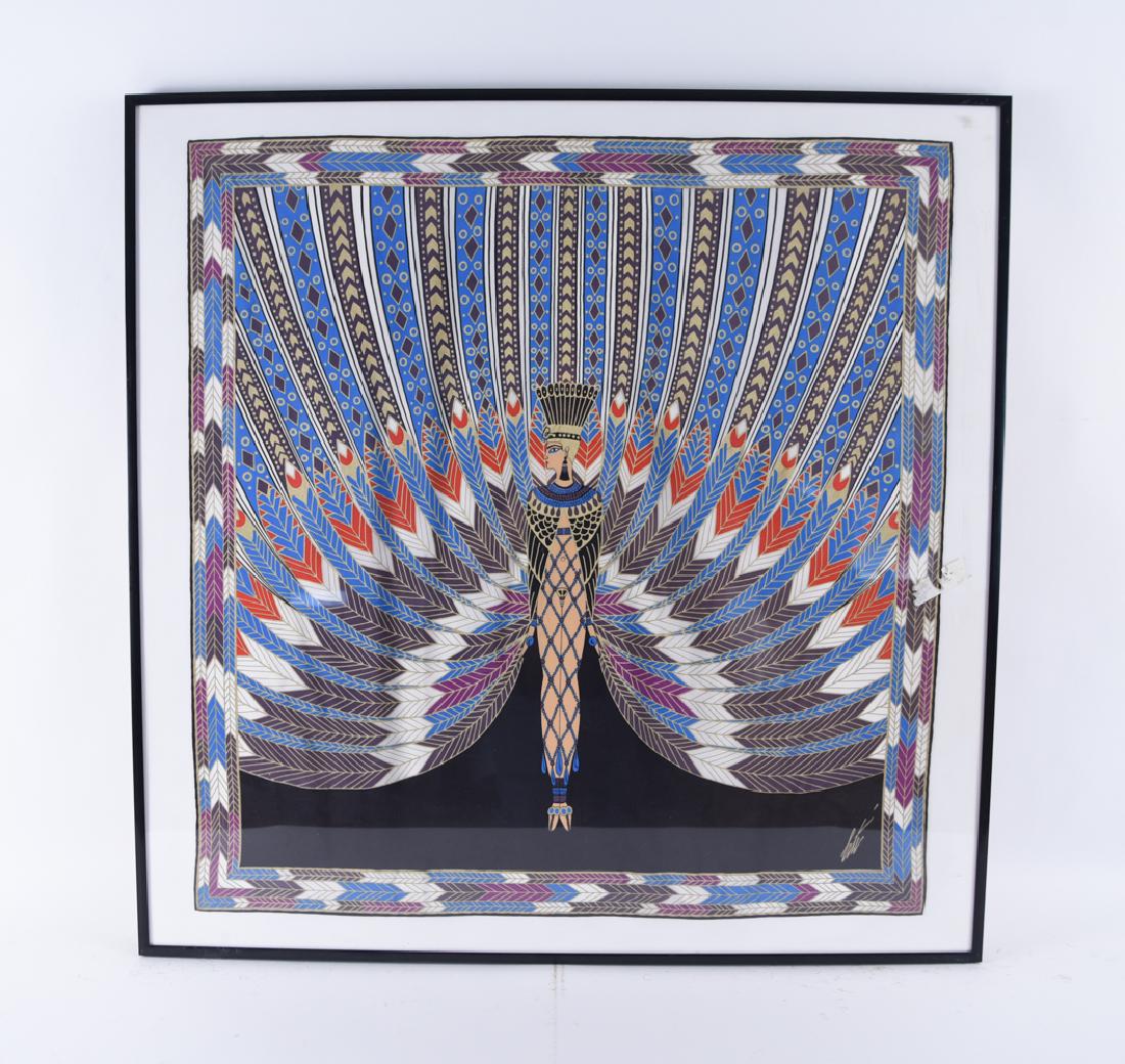 SoldVintage 1980 Erte' Silk Scarf, Signed & framedexcellent condition, in frame, approx. 38 x 39 inchesSee Sold Price