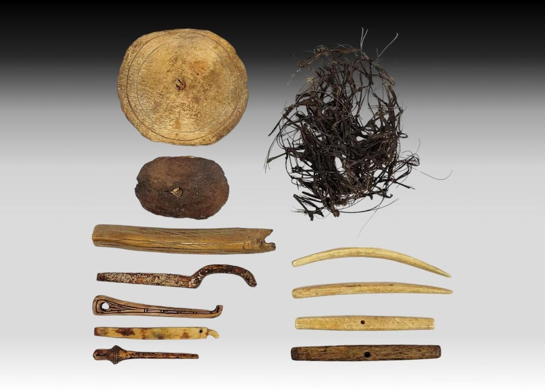 Eskimo Artifacts - Whale Patella, Sinew Winders, Net, Hooks & More