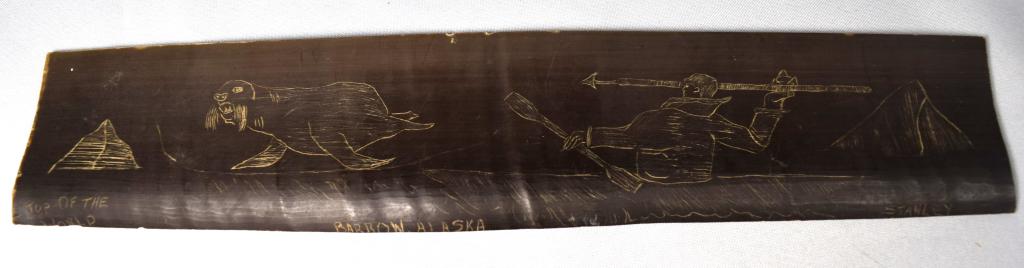 ESKIMO INUIT SCRIMSHAW BALEEN PANEL