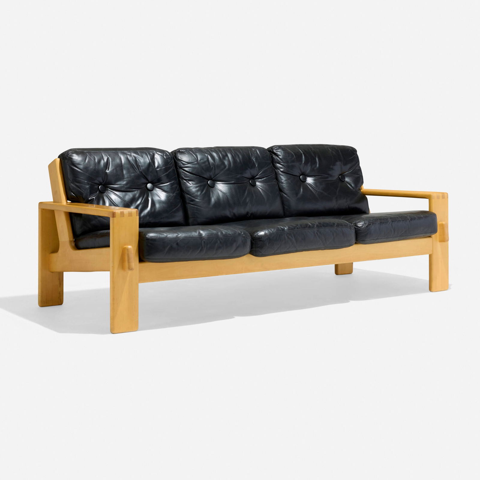 ESKO PAJAMIES "Bonanza" Leather Sofa. Blond Oak Frame with Thru Tenon and Dovetail Details. DesignedESKO PAJAMIES "Bonanza" Leather Sofa. Blond Oak Frame with Thru Tenon and Dovetail Details. Designed for ASKO, Finland. MCM. Mid Century Modern. Dimensions: Height: 28 inches, Width: 74.5 inches, Dept
