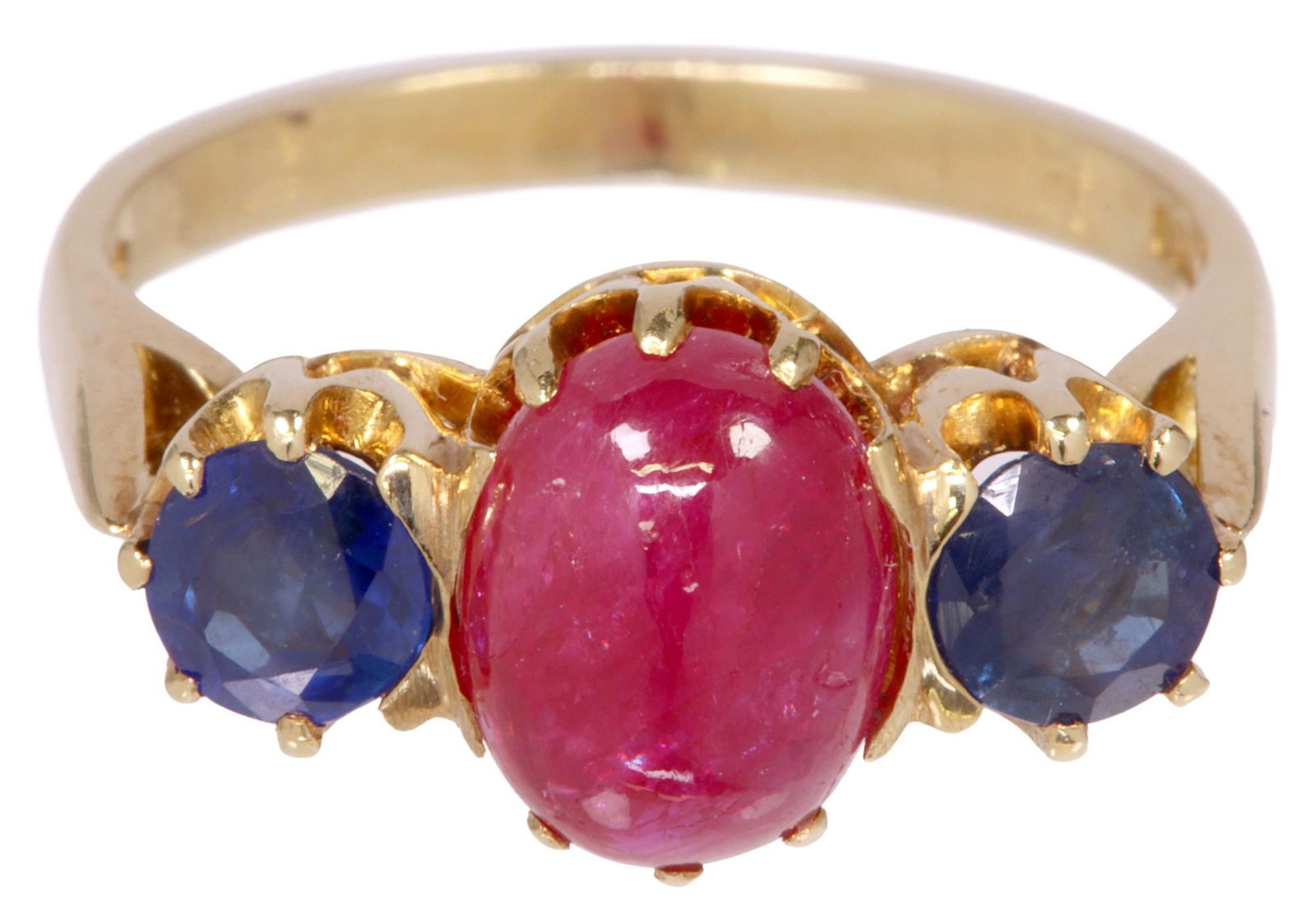 ESTATE 18KT GOLD CABOCHON RUBY & SAPPHIRE RING