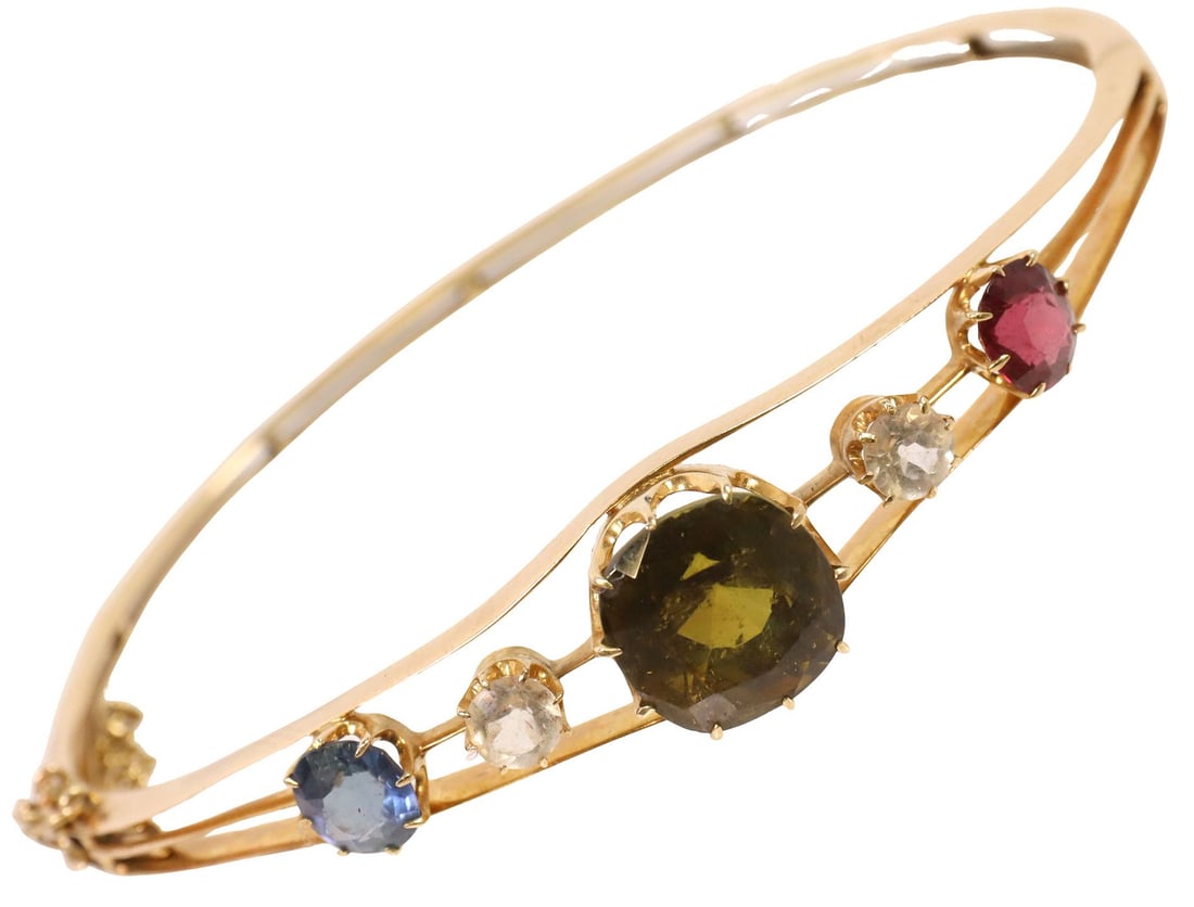 ESTATE 18KT GOLD MULTISTONE HINGED BANGLE BRACELET