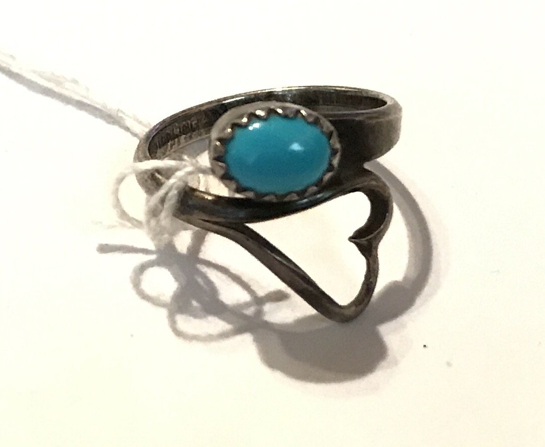 Estate Old Native American sterling turquoise ring