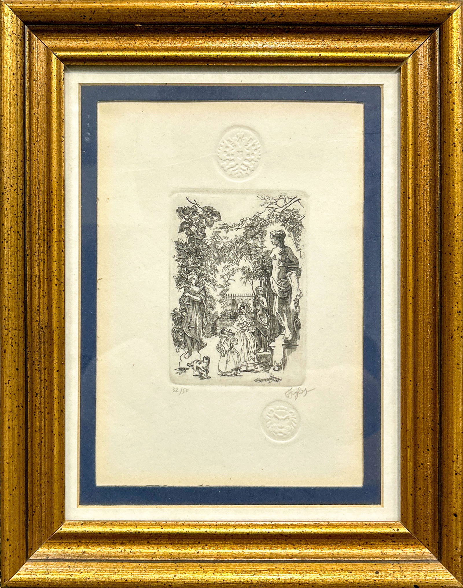 Etching, Garden Scene with Figures