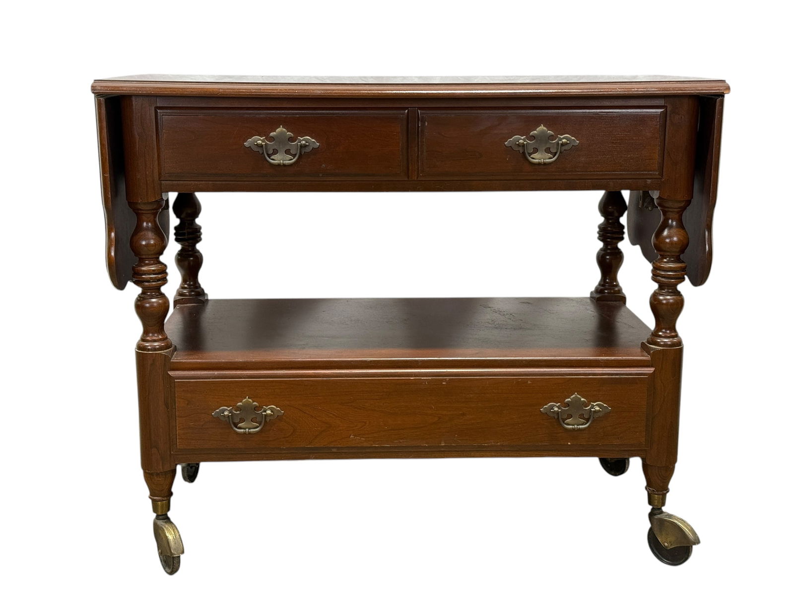 Ethan Allen Cherry Wood Drop Leaf Serving Cart