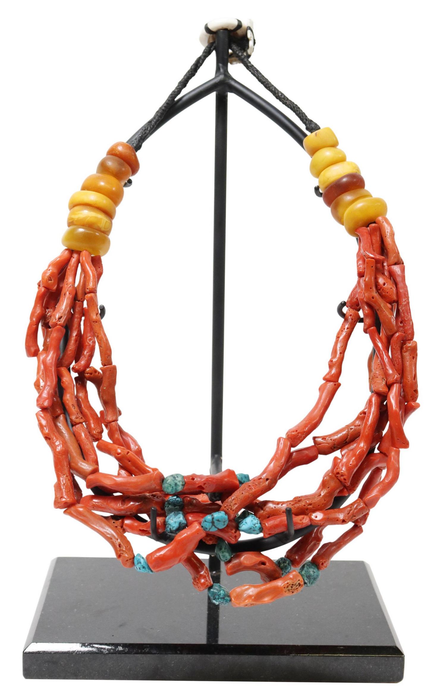 ETHNOGRAPHIC BEADED NECKLACE ON DISPLAY STAND