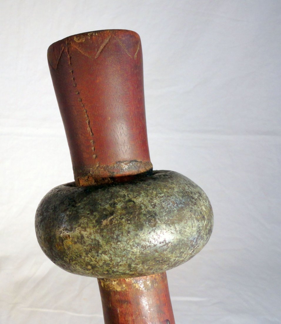 Ethnographic Oceanic War Staff with Stone Ring