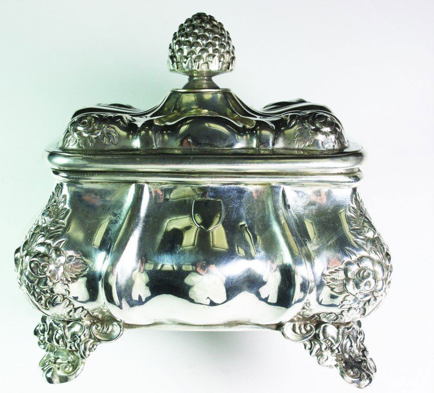 17th Century Antique Charles II Silver Large Porringer & Cover London 1684 Richard MarchantHandmade 925 Sterling Silver Floral Leaf Esrog Box 5.5" x 6"1 day LeftItalian 925 Sterling Silver Floral Leaf Chased Spice Besamim BoxFeb 28, 2026925 Sterling Silver Handmade Floral Swirl Engraved Esrog BoxMar 02, 2026David Andersen Silver Covered TankardMar 16, 2026Italian 925 Sterling Silver Chased Floral Esrog Box 4x6 Inches1 day LeftA CHINESE EXPORT SILVER LIDDED DRAGON JARMar 06, 2026Handmade 925 Sterling Silver Carriage Esrog Box with Leaf Applique5 hrs LeftSTERLING SILVER SOUP TUREEN ANTIQUEMar 03, 2026Silver Relief Square Lidded Jar with Figure Story Pattern1 day LeftA William IV silver teapot,Handmade Italian 925 Sterling Silver Floral Leaf Esrog Box5 days LeftGeorge II Sterling Silver Kettle on StandMar 16, 2026Persian Sterling Silver Covered Bowl with HandlesFeb 28, 2026Chinese silversmith. Lidded jar richly decorated in relief with flowers and ornaments.TIFFANY & CO STERLING CENTERPIECE, 43 T.O.W.Mar 07, 2026