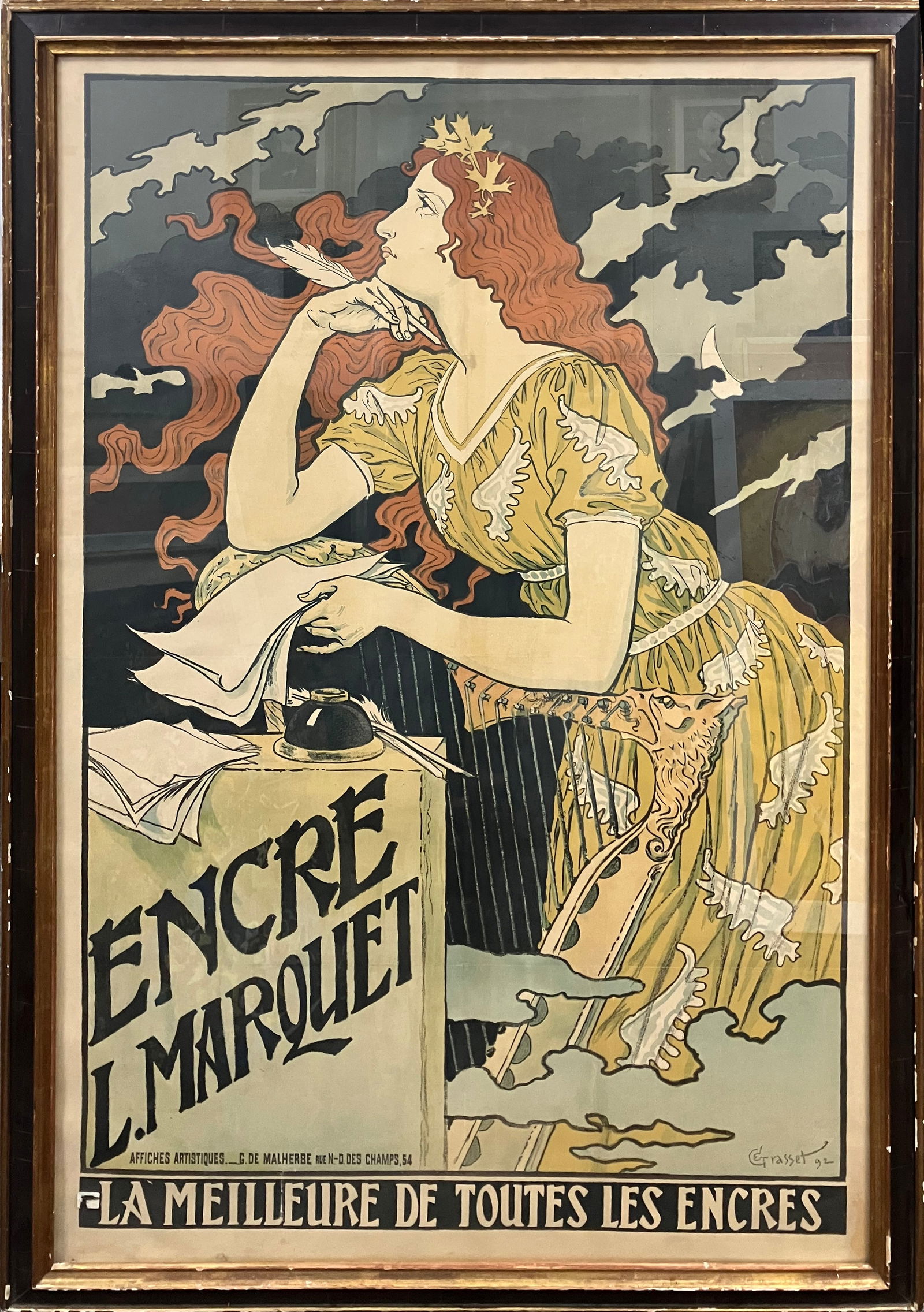 Eugene Grasset Encre L. Marquet 1892 original vintage french poster chromolithography
