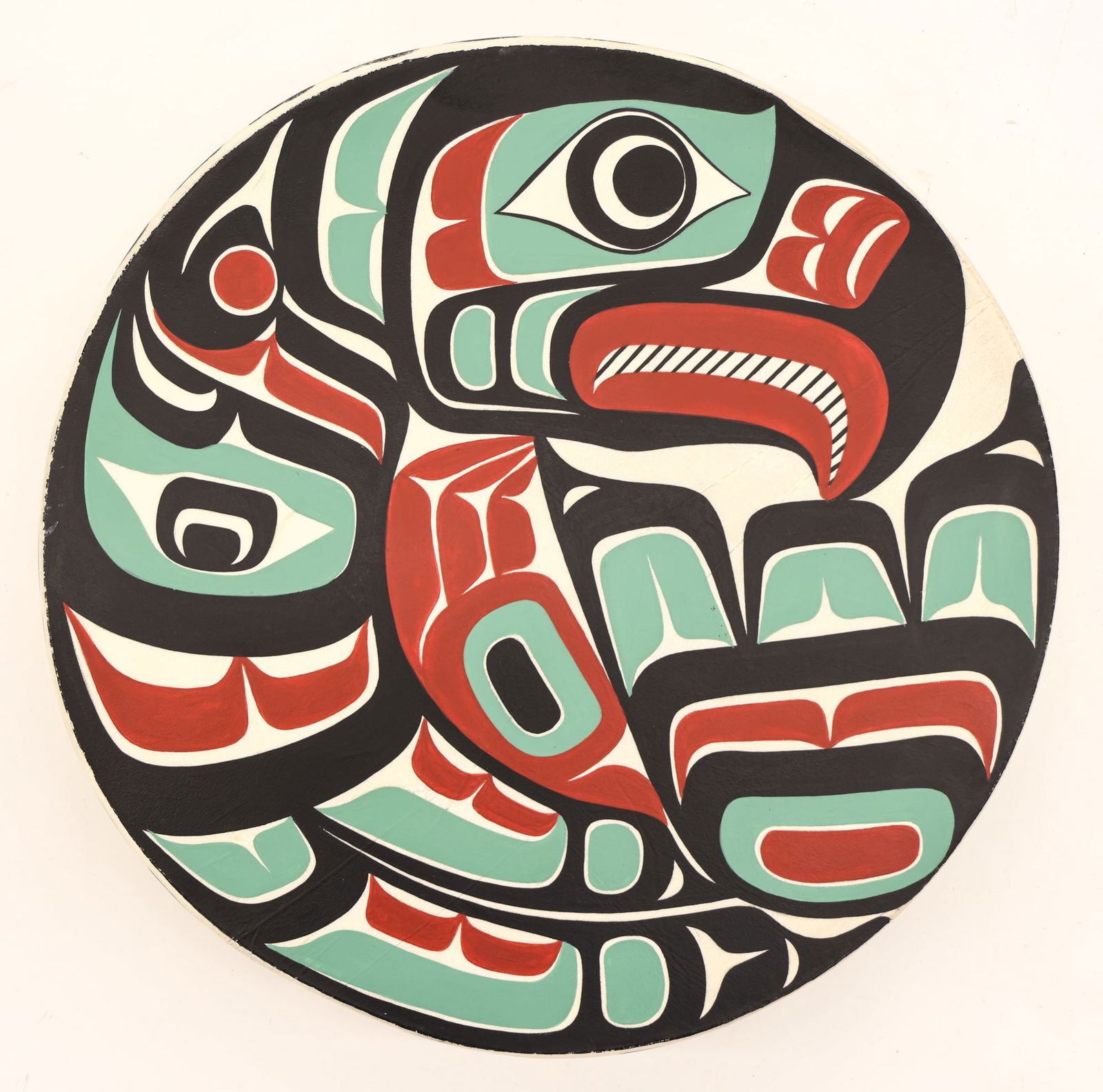 Eugene Hunt "Eagle Drum" Painted Hide and Cedar
