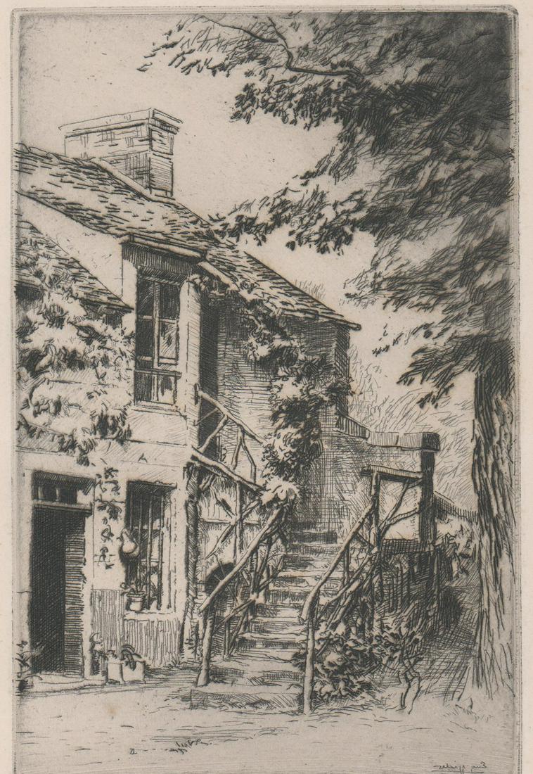 Eugene Veder Etching [Stairs, House]