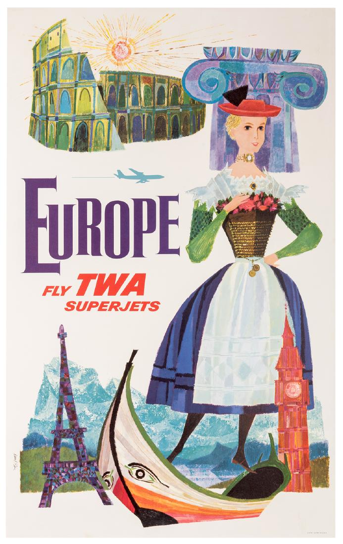 Travel Poster TWA Airline Rome Italy David KleinAntikBar Original Vintage Posters4.6(120)£1203 days Left