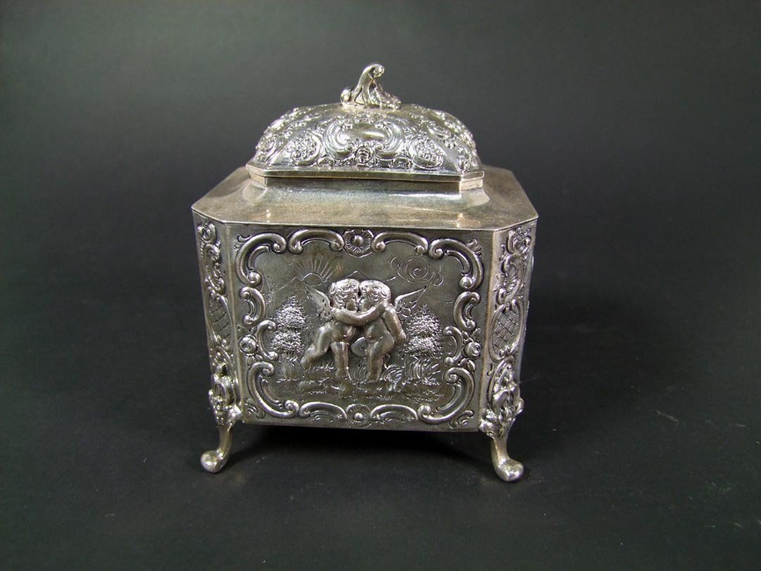 Vintage Silver Plate Jewelry BoxMar 10, 2026DUTCH SILVER MARRIAGE CASKETFeb 21, 2026German repousse silver singing bird box7 days LeftDutch 833 Silver Locking Tea Caddy Circa 1823Feb 22, 2026Antique German .800 Silver Tea Caddy Beaded Bright-Cut with Lion FeetFeb 26, 2026German 800 Silver Repousse Cherubs Large BoxFeb 22, 2026German Silver Repoussé Tea Caddy Romantic SceneFeb 22, 2026A GEORGE III SILVER OVAL TEA CADDY5 days LeftLarge 19th Century French Figural Silver Plated Jewelry Box1 day LeftGerman 750 Silver Vinaigrette Box Kecker Before 1886Feb 22, 2026AN EDWARDIAN SILVER TEA CADDY5 days LeftCalcutta circa 1860 by Hamilton and Co A mid-19th century Indian colonial cast silver table snuff6 days LeftVictorian Silver Plate Tobacco Jar, ca. 1850Mar 12, 2026Austrian Sterling Silver Tea Caddy Eagle Finial Brite Cut c.1890Feb 20, 2026Judaica Sterling Silver Box6 days LeftA SILVER PARTIALLY GILT COVERED JAR WITH BIRD AND FLOWER DESIGNMar 05, 2026