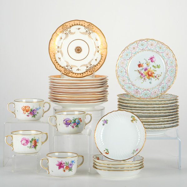 Group Lot of Shelley Bone China PiecesMar 26, 202690 Pc Lot of Minton Meadow China4 days LeftLot of Shelley Bone China Plates and BowlsMar 26, 202619 Pc Lot of China & Porcelain with Botanical & Bird Decoration, Herend4 days LeftA. Giraud & Brousseau - Limoges Porcelain Combined Corail Services, 108 PiecesFeb 26, 2026Royal Worcester - Watteau Porcelain Near Service for 12Feb 26, 2026(32) JAPANESE PORCELAIN TEA SERVICE & CHINESE FAMILLE ROSE PLATES4 days LeftRoyal Copenhagen, Saxon flower, nine plates consisting of seven lunch plates and two smaller plates.Rosenthal, a tea service for ten people. Consisting of ten teacups with matching saucers.Royal Copenhagen Saxon Flower. Six deep plates in hand-painted porcelain with flowers and goldAssorted Vintage Porcelain Teacups & SaucersFeb 27, 2026B&G, Bing & Grondahl Saxon flower. Six dinner plates decorated with flowers and gold rim.B&G, Bing & Grondahl Saxon flower. Six deep plates decorated with flowers and gold rim.B&G, Bing & Grondahl Saxon flower. six cake plates decorated with flowers and gold trim.(84) ENGLISH SPODE 'INDIAN TREE' PORCELAIN DINNER SERVICE4 days LeftDresden Bavaria German Floral Dinnerware Set - Service for 12Mar 26, 2026