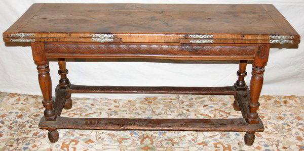 EUROPEAN OAK & WALNUT REFRACTORY DRAW TABLE,