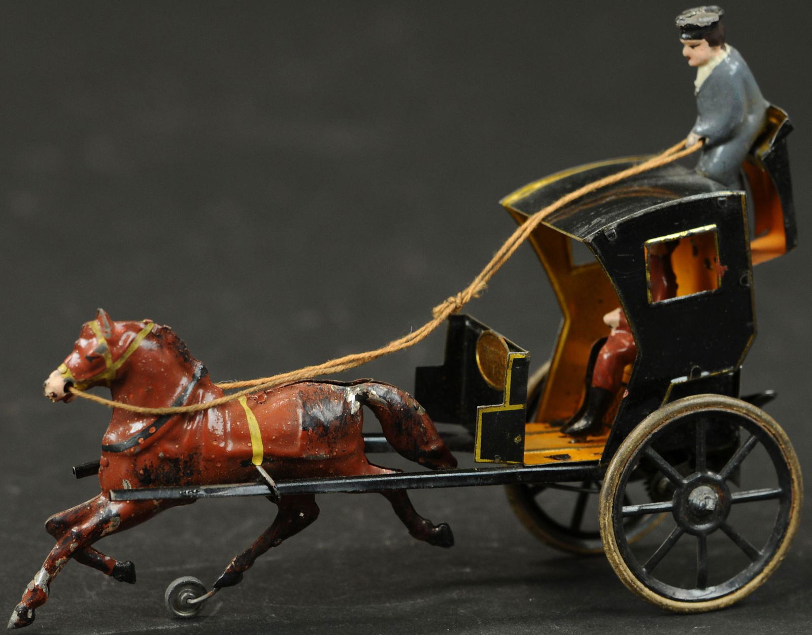 Model of 2 draft horses hitched to hay wagonMar 27, 2026Model of 2 draft horses hitched to wagonMar 27, 2026Cast Iron Sulky Cart, Horse, and Driver. Appears to be original paint, unusual spring mechanism, 12"2 days LeftElaborate Pony CartMar 07, 2026Extremely Rare Dog Cart CarriageMar 07, 2026FERNAND MARTIN HANSOM CAB5 days LeftRare Victoria Phaeton Carriage ToyMar 07, 2026ISSMAYER HORSELESS AUTO DELIVERY WAGON5 days LeftTwo Seat One Horse SurreyMar 07, 20261890's Kenton Cast Iron Horse Drawn CarriageMar 28, 2026Unusual Yellow One Horse Stake WagonMar 07, 2026One Horse Fire Patrol TruckMar 07, 2026Two Horse Stake Body WagonMar 07, 2026Jenny The Balking Mule Lithographed Wind Up ToyMar 07, 2026Nickel Plated One Horse Stake TruckMar 07, 2026A Han Dynasty copper gold and silver horse-drawn carriageMar 18, 2026