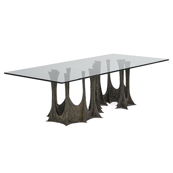 MCM Peter Ghyczy Style Beveled Glass Top Pedestal Dining/Table/ DeskPaul Evans, Sculpted Bronze dining table, model PE-105Feb 26, 2026Paul Evans, Sculpted Bronze coffee table, model PE-131Feb 26, 2026A Magni Design weathered bronze and glass Mesa dining table, modernFeb 25, 2026Paul Evans Mid-Century Modern Chrome Dining Table with ExtensionsFeb 23, 2026Sculptural Brass and Glass Dining Table with Organic Base, Mid-Century Modern StyleFeb 27, 2026Milo Baughman Style Chrome and Glass 8 Person Dining TableA Steven Holl 'Riddled' double pedestal dining table for HORM4 days LeftSculptural Brass & Glass Dining Table with Blackened Accents, Organic Mid-Century Modern StyleFeb 27, 2026Unique Silas Seandel Brutalist Steel Coffee Table with Glass Top 1970Feb 28, 2026Midcentury Dining Table by Paul Evans for DirectionalMar 05, 2026Brueton Post-Modern Brass and Chrome 40 Inch Dining Table2 hrs LeftPhilip and Kelvin Laverne 'Etruscan' Acid-Etched Bronze Dining Table Circa 1960s 26"H x 47 1/2"Diam.5 days LeftHoward Meister, Coffee tableFeb 26, 2026Vintage Pierre Deux French Brass Steel Glass Dining Table 69.5 x 41.625Mar 01, 2026Maria Pergay, Important dining tableFeb 26, 2026