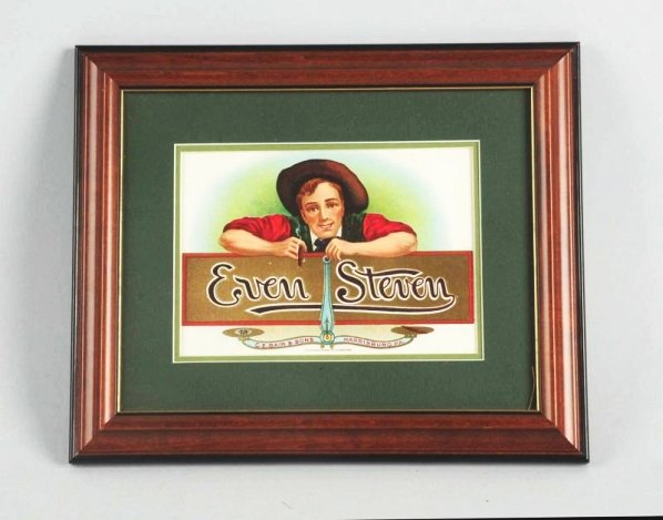 Sold"Even Steven" 5 Cent Cigar TinItem measures approx. 5 1/2" h. It was made by CE Bair & Sons, Harrisburg, Pa. It has good graphics and shows common wear consistent with age.See Sold Price