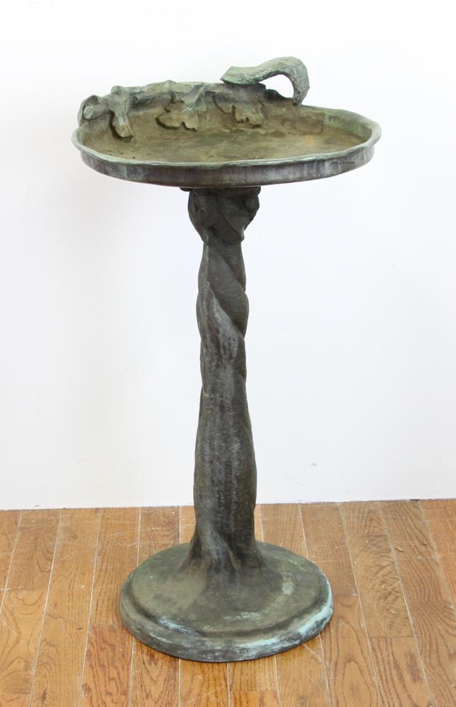 Exceptional Bronze Tree Trunk Birdbath