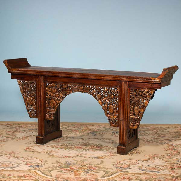 Exceptional Chinese walnut alter table with carved