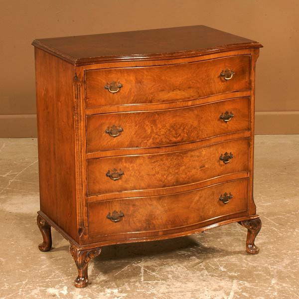 Exceptional English burl walnut serpentine front,