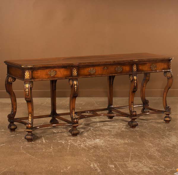 Exceptional English walnut and gilt serving or con