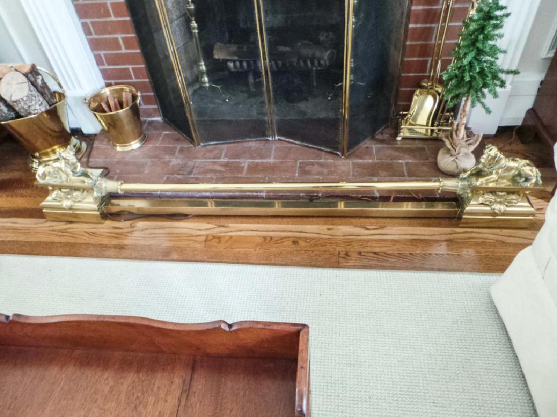EXCEPTIONAL FIGURAL BRASS FIREPLACE FENDER