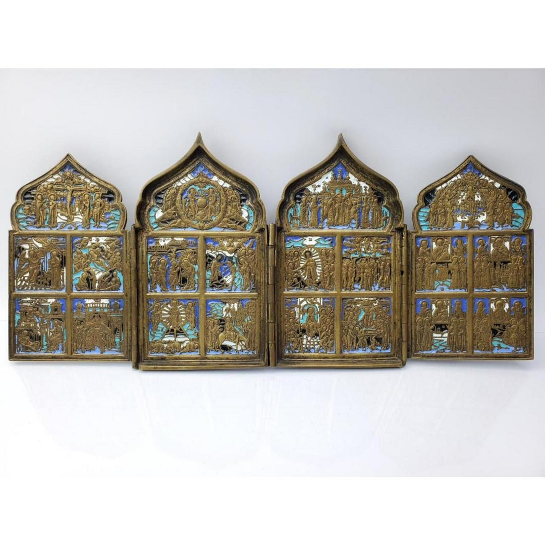 Exceptional Russian Bronze Tetratych with Enamel