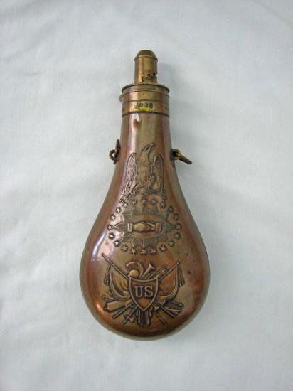 Exceptional U.S. 1850 brass ~Peace~ powder flask marked