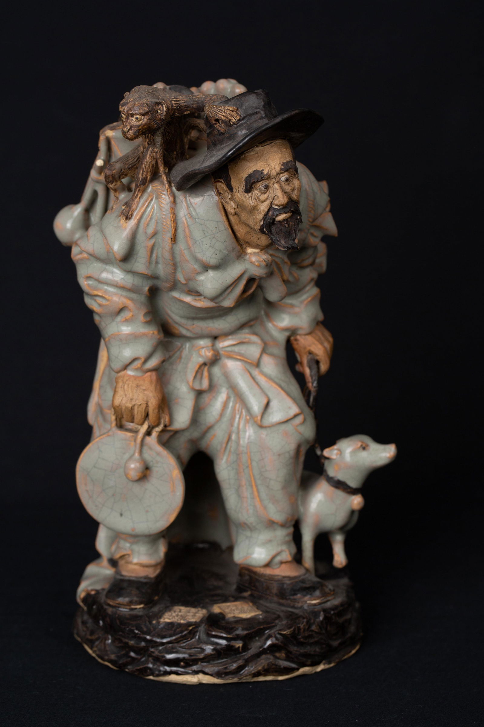 SoldChinese export ceramic sculptures(3) Chinese export ceramic items including foo dog and two fisherman. Dimensions: Foo Dog: H 20" x W 15.5" x D 8" Condition: All presenting nicely.See Sold Price