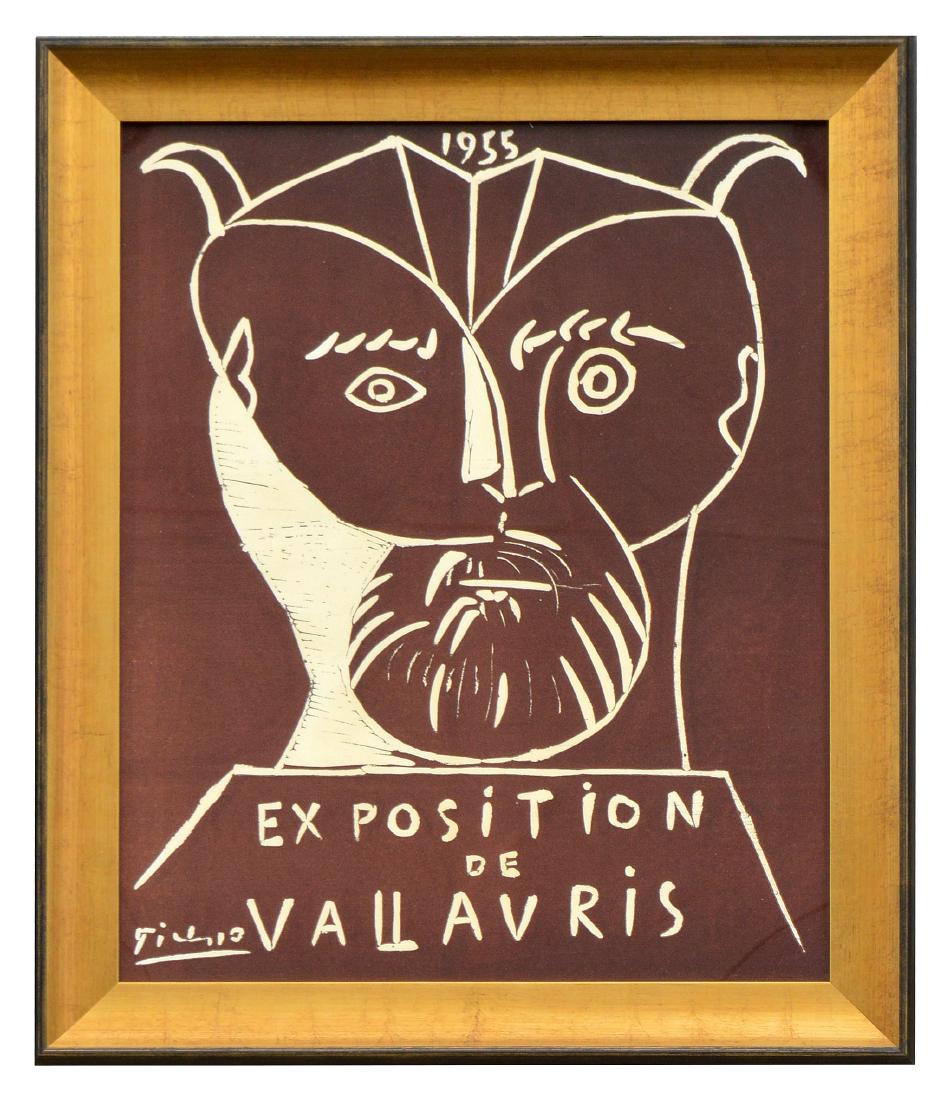 SoldPICASSO, Pablo. "Exposition de Vallauris" LinocutPoster, 1955. Pencil signed lower right. Pablo Picasso (Spanish, 1881 - 1973). From a Fairfield, CT home. Dimensions: 30.5" high x 22.75" wide. Condition: Foxing throughout.See Sold Price