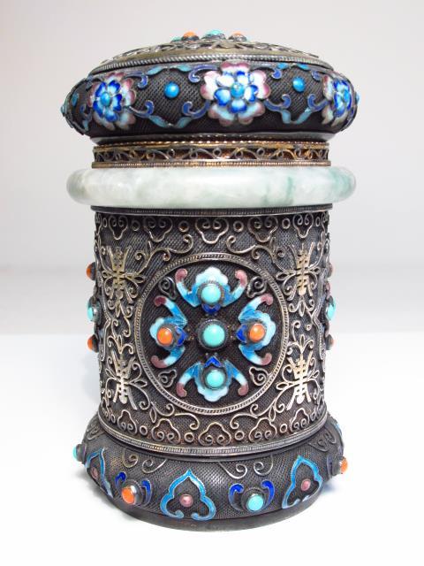 EXQUISITE CHINESE EXPORT SILVER & JADEITE BOX
