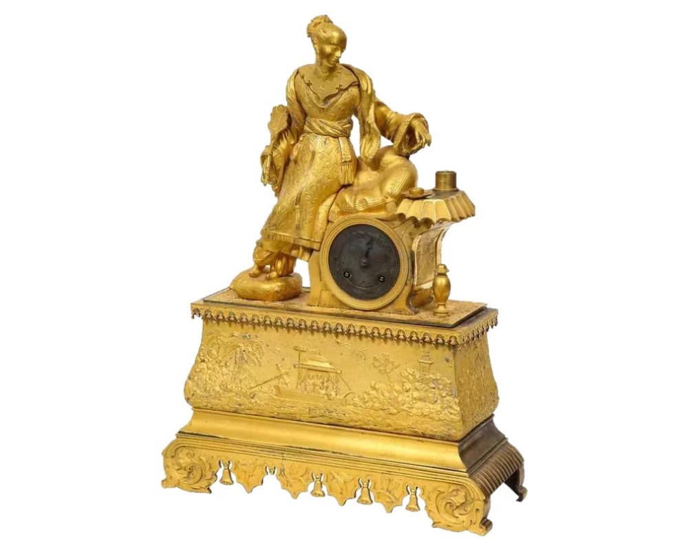 Exquisite French Charles X Ormolu Chinoiserie Figural Table Clock