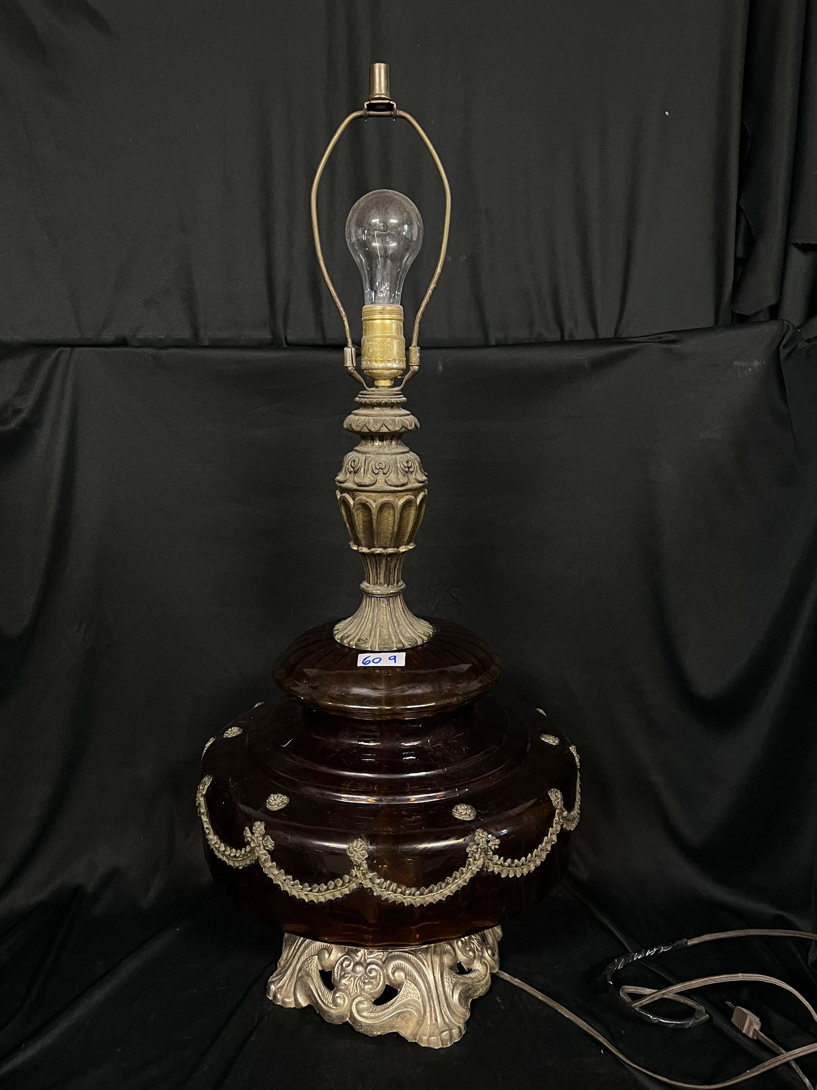 Extra Large Amber Glass Vintage Table Lamp