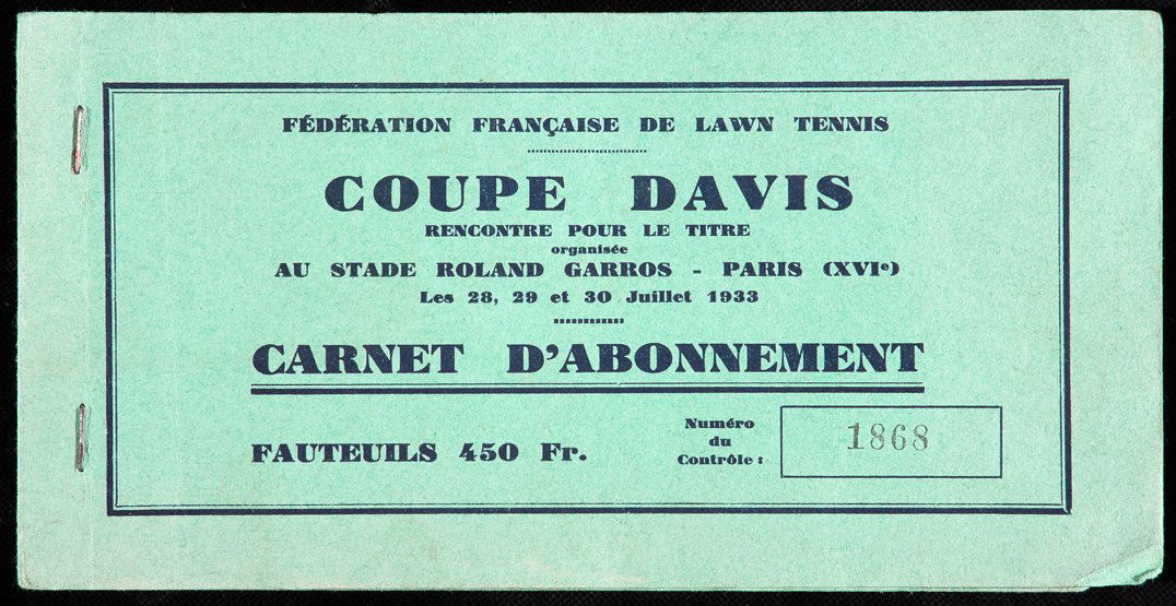 Extremely rare 1933 Davis Cup ticket booklet with 2