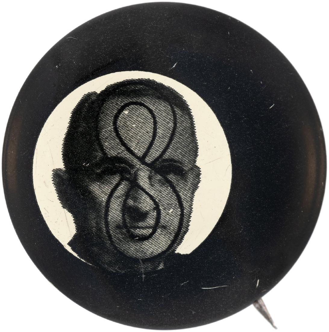 FABLED TRUMAN 8-BALL LITHO BUTTON HAKE #128.