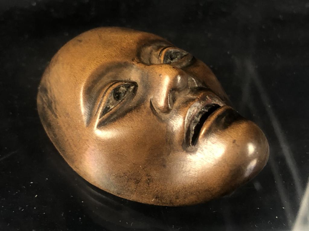 Fabulous Signed Mini Carved Wood Mask Netsuke