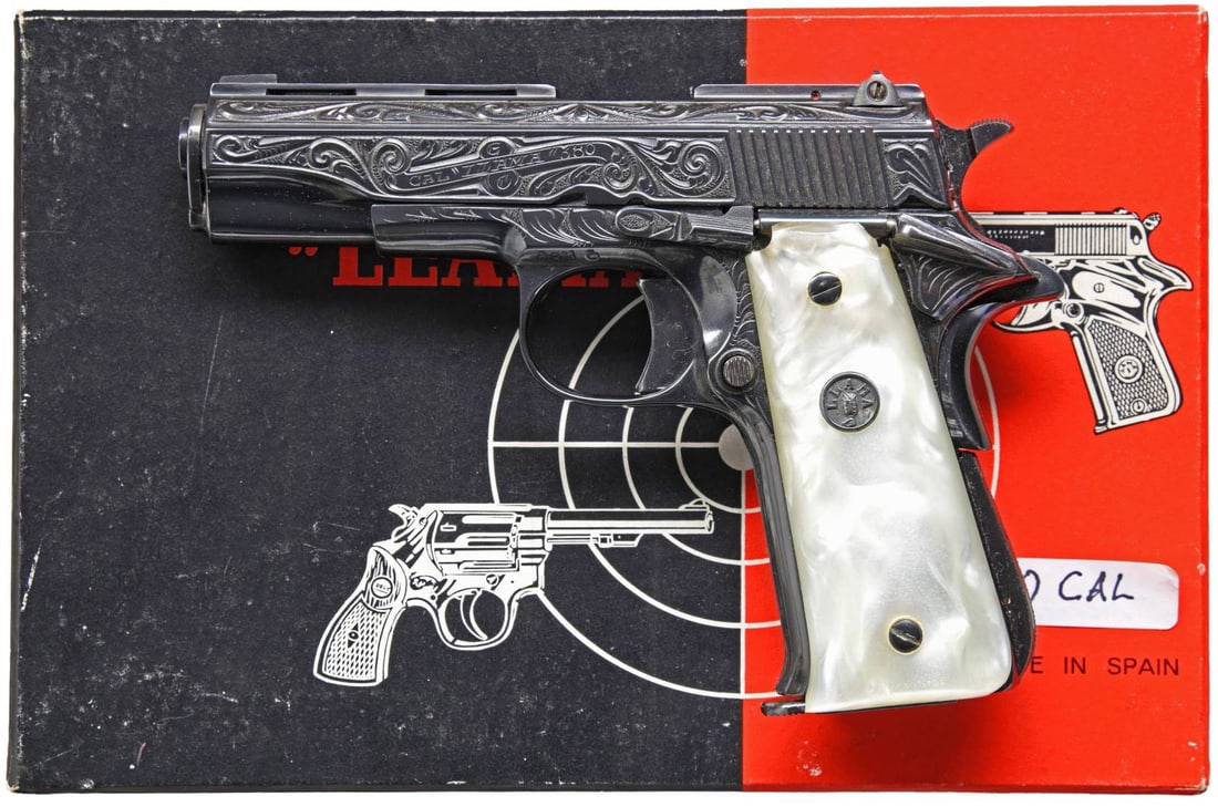 Fabrique Nationale, HP, Semi-Auto Pistol, 9 MM caliber, SN 58640, engraved nickel finish, 4 1/2"Mar 29, 2026HIGH STANDARD MODEL 106 MILITARY PISTOL4 days LeftStar, C O Model, Semi-Automatic Pistol, .25 caliber, SN 246 under left grip, believed to be factoryMar 29, 2026SMITH AND WESSON MODEL 645 SEMI AUTO PISTOL4 days LeftNAZI MARKED FN MODEL 1922 PISTOL 7.65 mm4 days LeftGABILONDOY Cia -ELGOIBAR LLAMA MODEL 1 IN 7.65MM4 days LeftDAN WESSON VALOR 45 ACP CALIBER SEMI AUTO PISTOL3 days LeftSTAR B. ESCHEVERRIA EIBAR MODEL F OLYMPIC PISTOL4 days LeftMETRO ARMS CLASSIC II 45 ACP CALIBER PISTOL3 days LeftARGENTINE HAFDASA MODEL BALLESTER-MOLINA PISTOL4 days LeftFN MODEL BABY BROWNING 6.35mm CALIBER PISTOL3 days LeftCOLT 1911 LUNCHBOX GUN 45 ACP NO ROLL MARKINGS3 days LeftThis Remington-Rand U.S. Army, .45 ACP caliber, Automatic Pistol, Model of 1911 A1, SN 2423874, 5"Mar 29, 20261944 DUSEK MODEL DUO 6.35mm CALIBER PISTOL3 days LeftRARE WOLF & KLAR 3RD MODEL 44 SMITH & WESSON OHIO3 days Left** Walther P.38 Semi-Automatic Pistol, ac 44 CodeMar 28, 2026