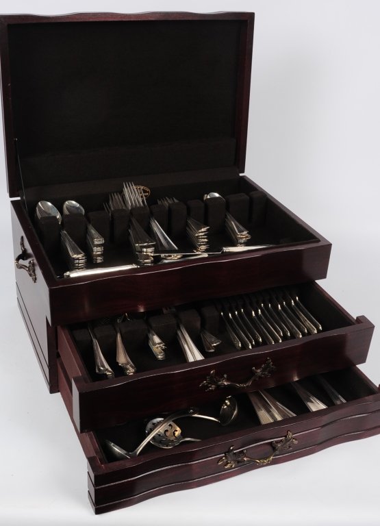 Tiffany "San Lorenzo" Sterling Silver Flatware Service for 12 With Extras1 day LeftTIFFANY & CO. 'HAMPTON' STERLING FLATWARE FOR 12Mar 25, 2026Gorham "Chantilly" Sterling Silver Flatware SetMar 29, 2026ALVIN "Chapel Bells" Sterling Silver Flatware, Service for 124 days LeftInternational Sterling Flatware Service6 days LeftHeirloom Sterling Silver Damask Rose Flatware Set 179PcMar 29, 202644 PC. REED & BARTON STERLING SILVER FLATWARE4 days LeftWallace Grand Baroque Sterling Service For 123 days LeftSolid Sterling Silver Flatware Set, Royal Windsor Pattern By Towle, Patented 1935Apr 18, 2026Gorham Sterling Silver Rondo Monogram Flatware 80pcsMar 29, 2026HEIRLOOM (ONEIDA) "DAMASK ROSE" STERLING SILVER FLATWARE SET New York, Mid-20th Century Approx. 54.4Mar 25, 2026CASED SET OF ALVIN "FRENCH SCROLL" STERLING SILVER FLATWARE FOR SIX New Jersey, 20th Century Approx.Mar 25, 2026Modernist Pattern Gold Plated Stainless Flatware Set of 92 by 1847 Rogers BrosMelrose by Gorham Sterling Flatware Set for 123 days LeftWestmorland Lady Hilton Sterling Silver Flatware Set 47 pcs Service for 85 days Left(63) Pieces Reed and Barton French Chippendale Silver Plate Flatware SetMar 28, 2026