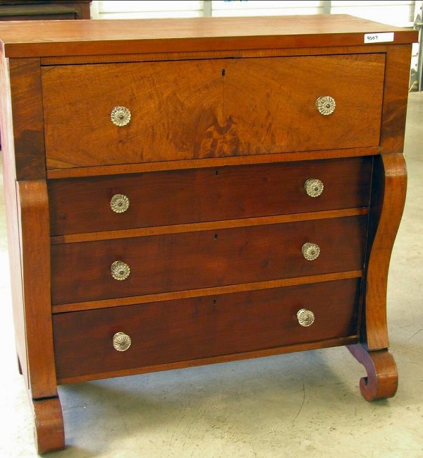 SoldTulipwood 3 dr chest w/ fall fr desk & fitted interior.Tulipwood 3 drawer chest with fall front desk and fitted interior. 44 1/4" wide x 18" deep x 46 1/2" tall.See Sold Price