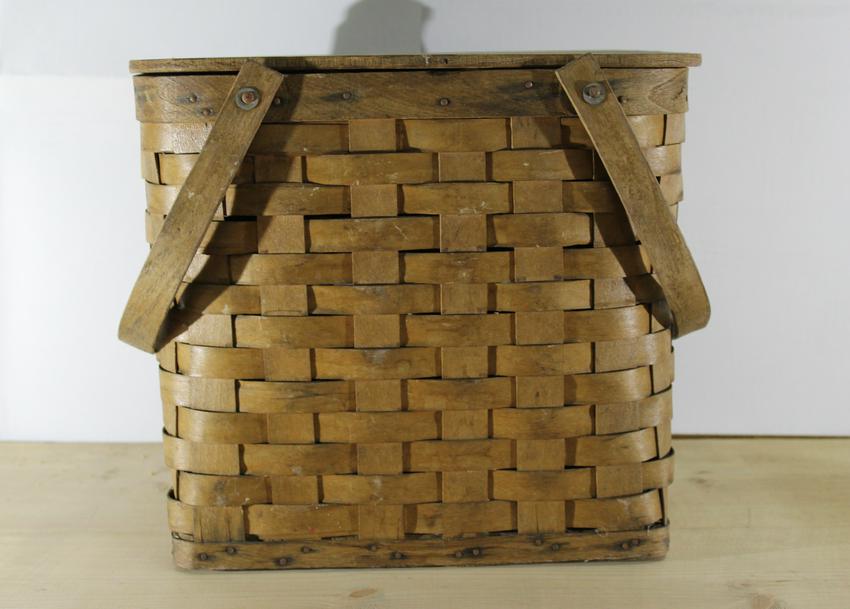 Classic Vintage Splint Weave Picnic Basket with Bentwood Handles