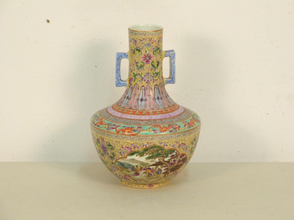 Famille Rose 2 Handled Vase