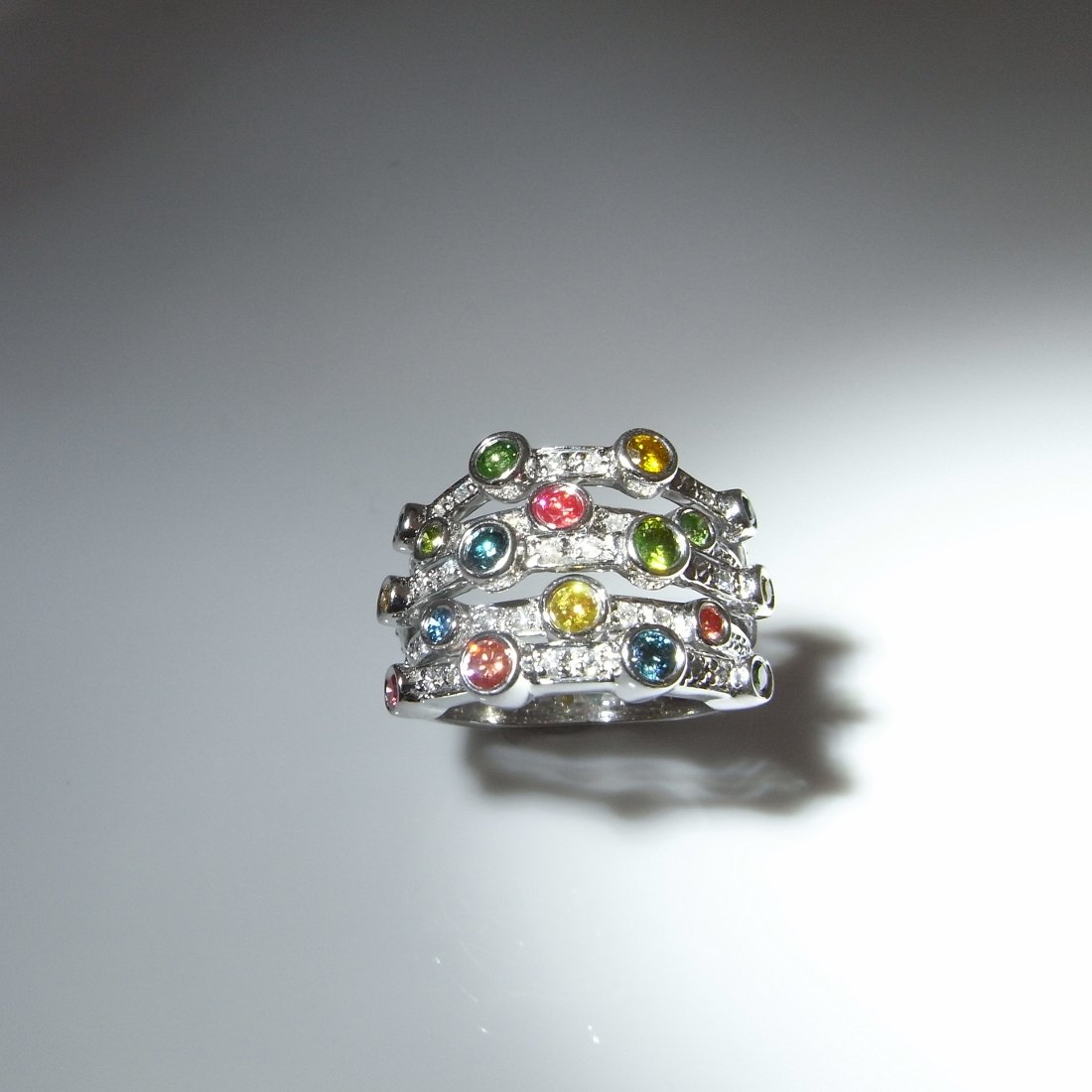 Fancy Colored Diamond Rainbow Tutti Frutti 14K Ring